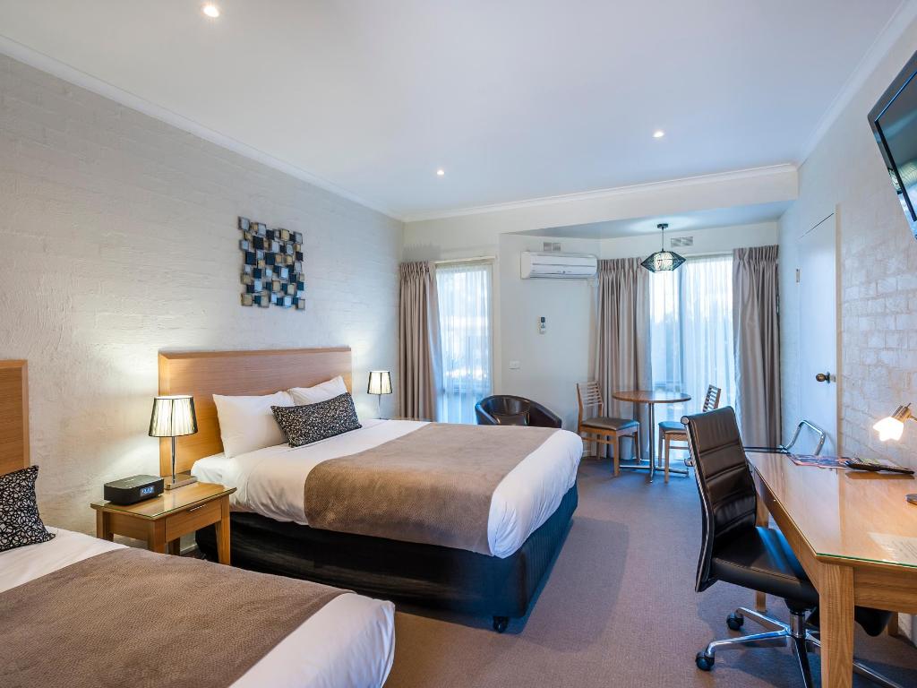 This newly renovated Deluxe Twin room offers value and comfort for travellers seeking quality, modern and comfortable accommodation and amenities. 1 Queen size pillow top and 1 single pillow top bed.